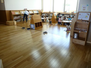 昨夜程、激しくありませんが、しっかり雨が降っています。園児の皆さんは、室内で好きな遊びを選んで楽しんでいます。